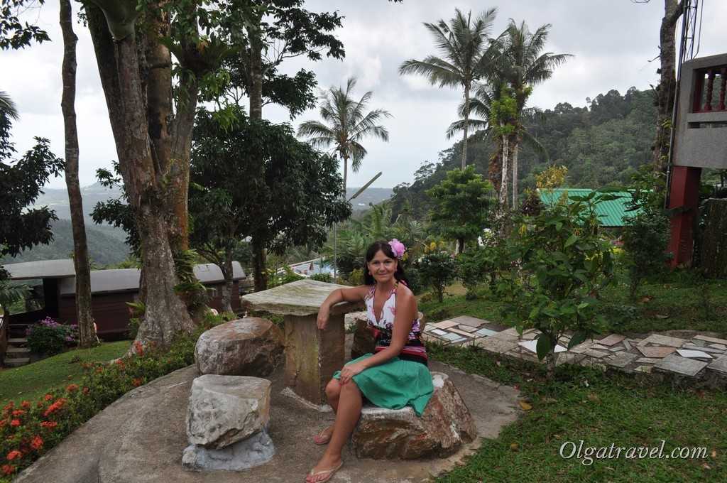 Скажу сразу, нам не очень повезло с погодой: на небе были тучки и все фотографии получились серые… Хочу отметить, что даже когда внизу, на Самуи жарко, в горах в Парадайз парке ощущается прохлада. Я даже замерзла!!!