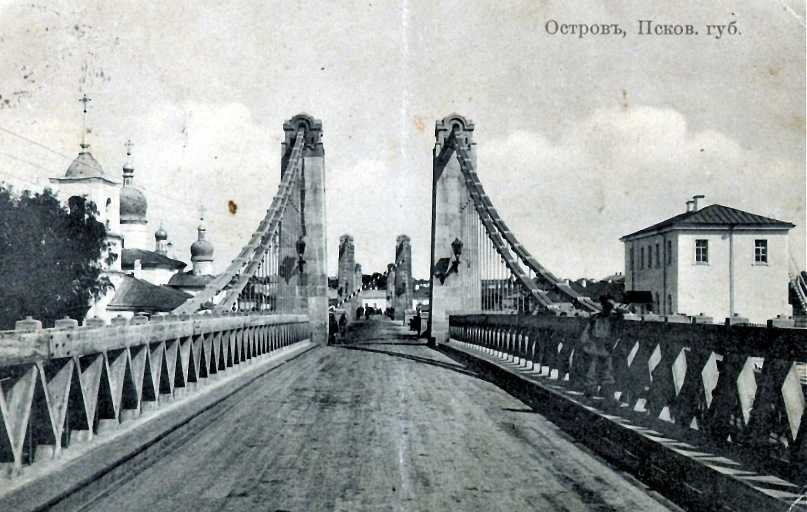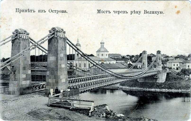 Цепной мост через реку Великую, дореволюционная фотография