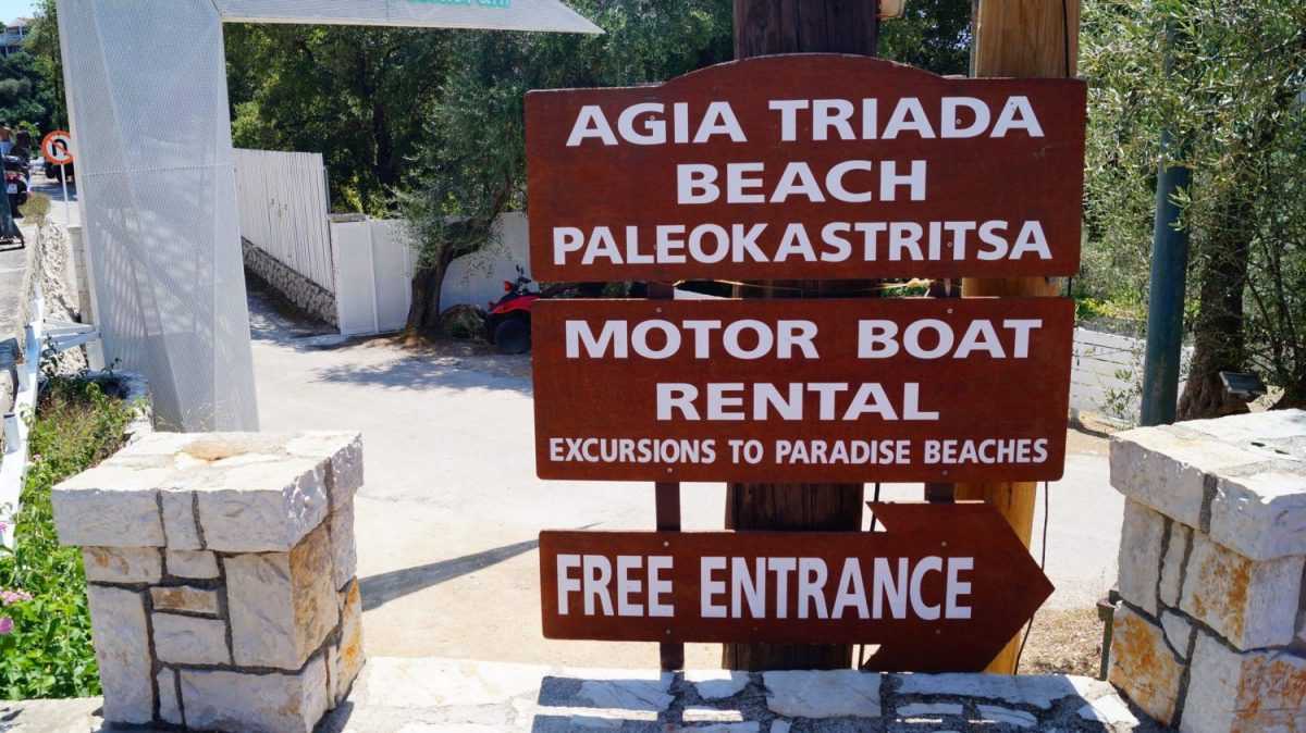 Первый пляж, который встретит вас при въезде в Палеокастрицу — это песчаный Агиа Триада бич.