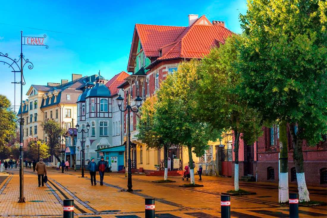 Одна из центральных улиц Зеленоградска носит название Курортный проспект. Уютная и благоустроенная улица со старыми домами, крытыми черепицей, сохранила архитектурное наследие прусского Кранца. Курортный проспект, превращенный в пешеходную зону, находится в исторической части города. Отсюда рукой подать до Балтийского побережья – нужно пройти буквально 200 метров.