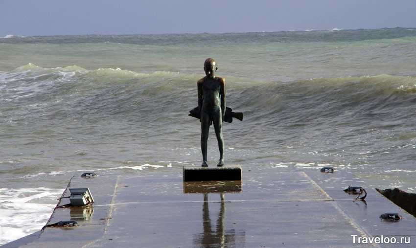 Хотя, на нём имеются некие потёртости, так что возможно уже что-то придумали. Это что-то вроде того, как в Москве на станции метро Площадь революции установлены статуи, которым народ дружно натирает кому нос, кому яйцо (куриное), кому пистолет – подо всё имеется своя примета. А может в случае с мальчиком – морская вода отшлифовала или туристы в поисках памятного кадра затрогали. :))