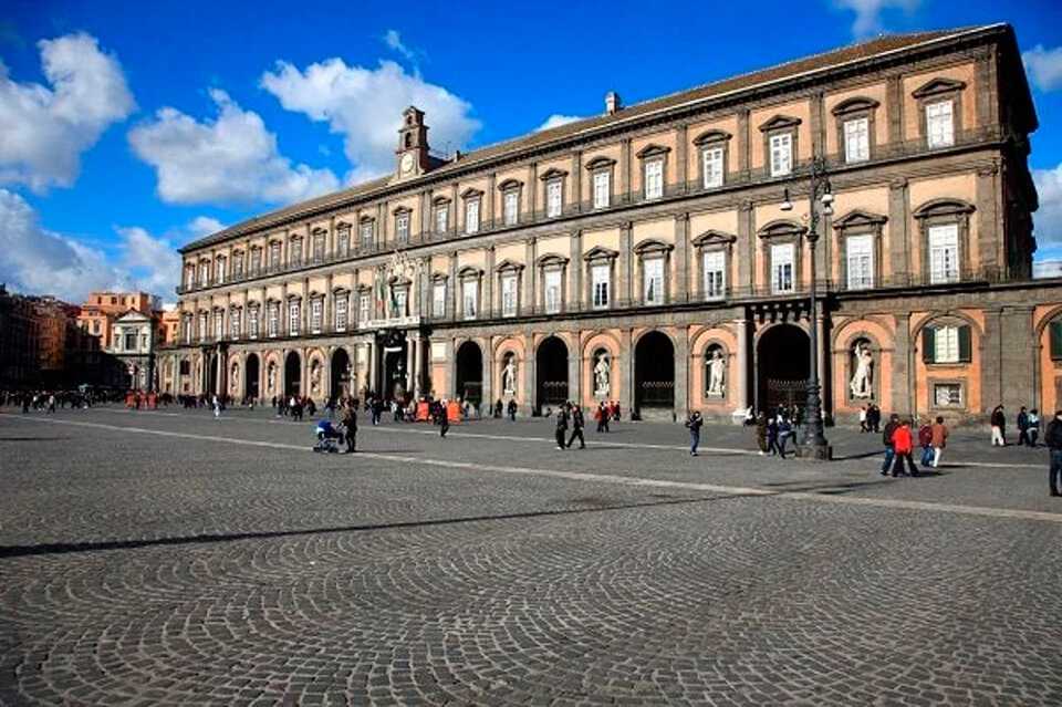 На главной великолепной площади Неаполя – Плебисцита находится монументальное трёхэтажное здание с большим количеством окон – Королевский дворец, строившийся полвека (1600-1650 г. г.) Он предназначался для неаполитанских правителей из рода Бурбонов, поэтому строили дворец с размахом, присущим этой династии. До сегодняшнего дня сохранился внешний облик дворца, соответствующий перестройке 18 века, проходившей под контролем известного придворного архитектора Ванвителли, знатока позднего барокко.