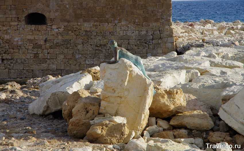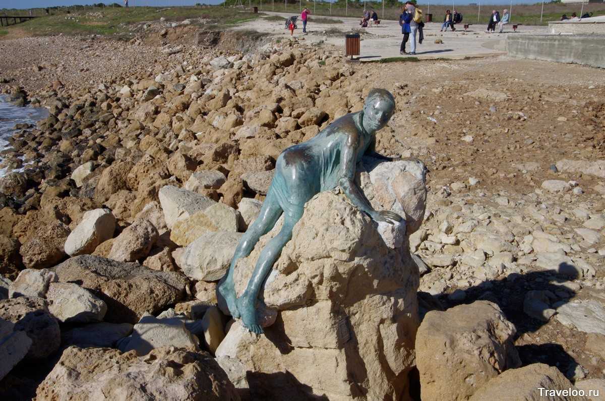 Статуя находится на центральной набережной Пафоса. Эта статуя символизирует морской промысел Кипра, который является основной отраслью и бла-бла-бла, а может это изваяние мальчику, которого спасла рыба… или спас он рыбу… В общем, думаю гиды придумают под эту статую какую-нибудь легенду, а пока это просто статуя, которая ничего не означает.