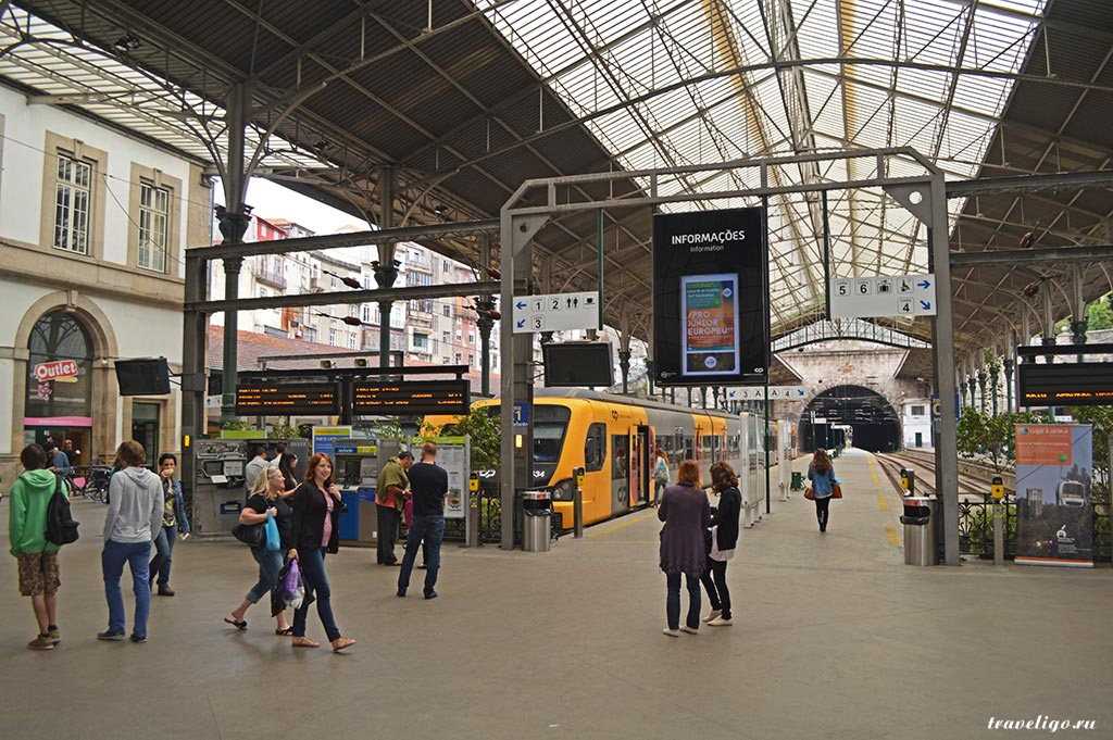 Перед вокзалом находится небольшая, но очень экстравагантная площадь Almeida Garrett, которая показывает всё разнообразие архитектурных стилей города.
