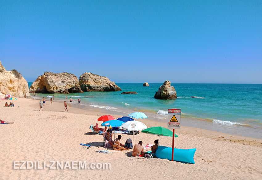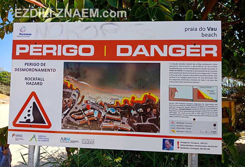 Выглядят эти махины действительно впечатляюще и в жаркий день, конечно же, хочется посидеть в их тени, однако многие из этих утесов представляют опасность. Туристам на пляжах Портимао рекомендуют держаться подальше от этих гигантов, поэтому внимательно изучайте схемы опасных зон – они есть перед входом на пляж.