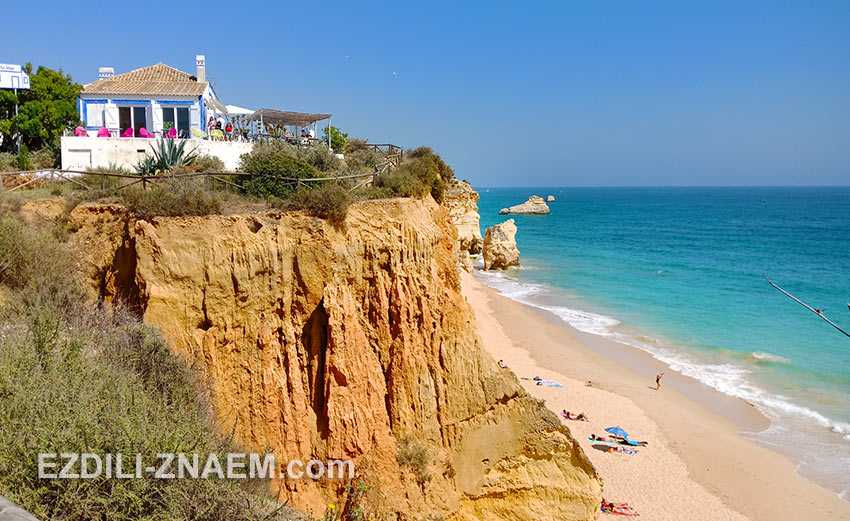 Типовой пляж Алгарве, – к воде нужно спускаться по крутой лестнице, зато внизу вы окажетесь в уютной бухточке в окружении причудливых скал. Прямо на пляже есть пара кафешек, где можно уютно устроиться с бокалом вина, чтобы встретить закат.