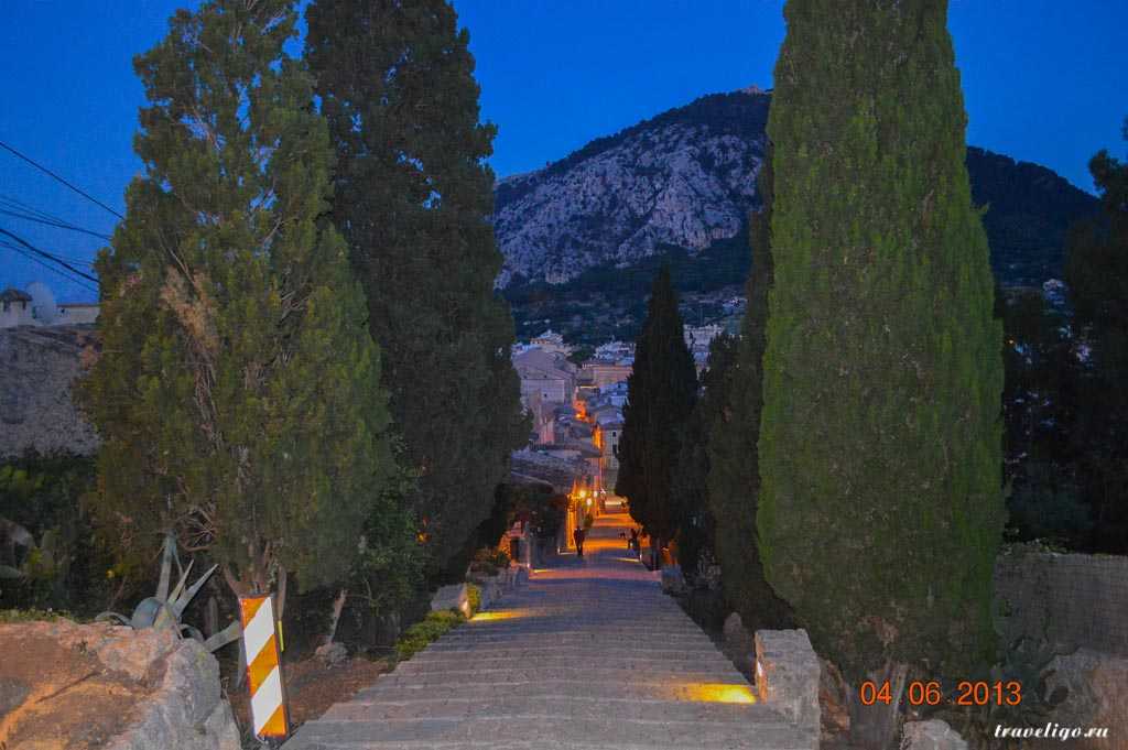 Спускаемся по лестнице обратно в город, чтобы ещё немного насладиться вечерними испанскими улицами и